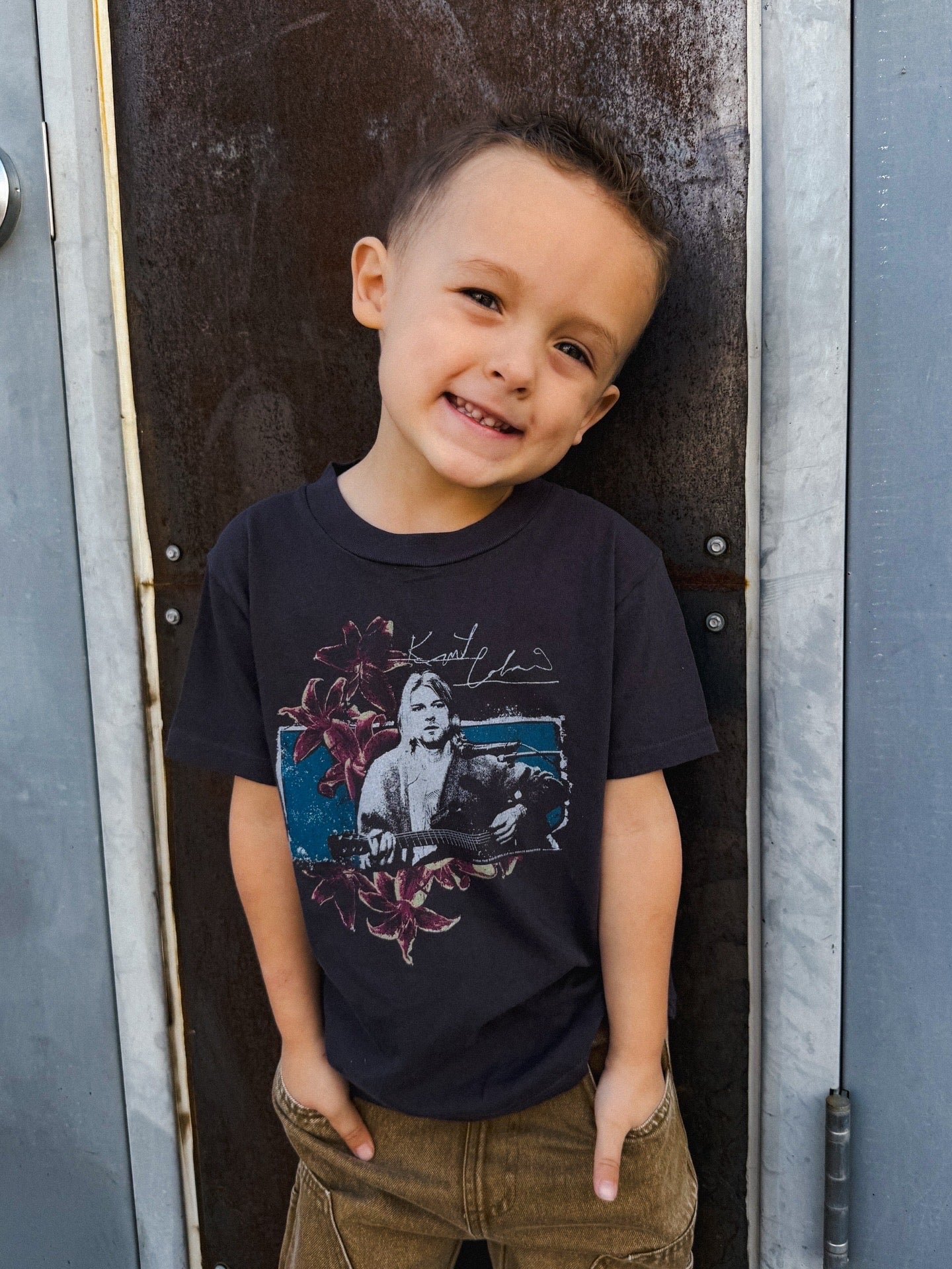 Little rock legends start here! The Rowdy Sprout Kurt Cobain kids tee is soft, playful, and made for music-loving kids
