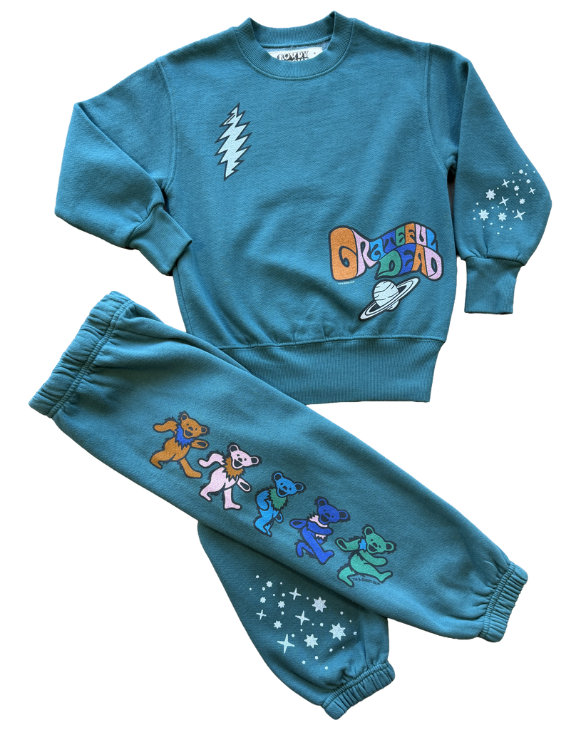 Bright, bold, and born to boogie. The Rowdy Sprout Grateful Dead Moon & Bears Crewneck wraps your little one in cozy comfort and psychedelic charm.