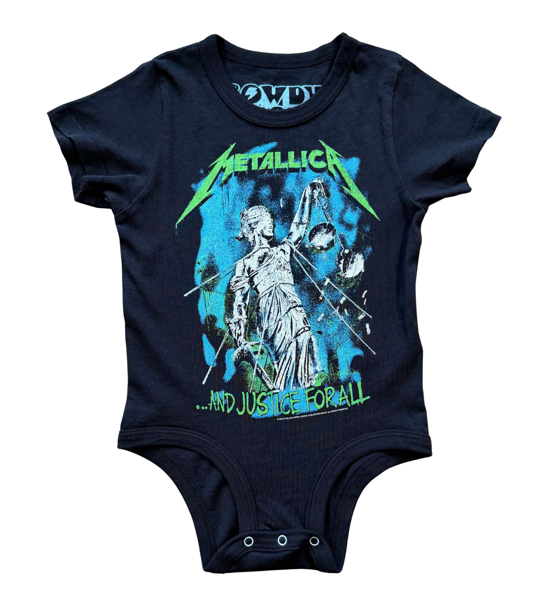 Heavy metal fun for kids! This Rowdy Sprout Metallica And Justice For All kids onesie is soft, comfy, and ready to rock